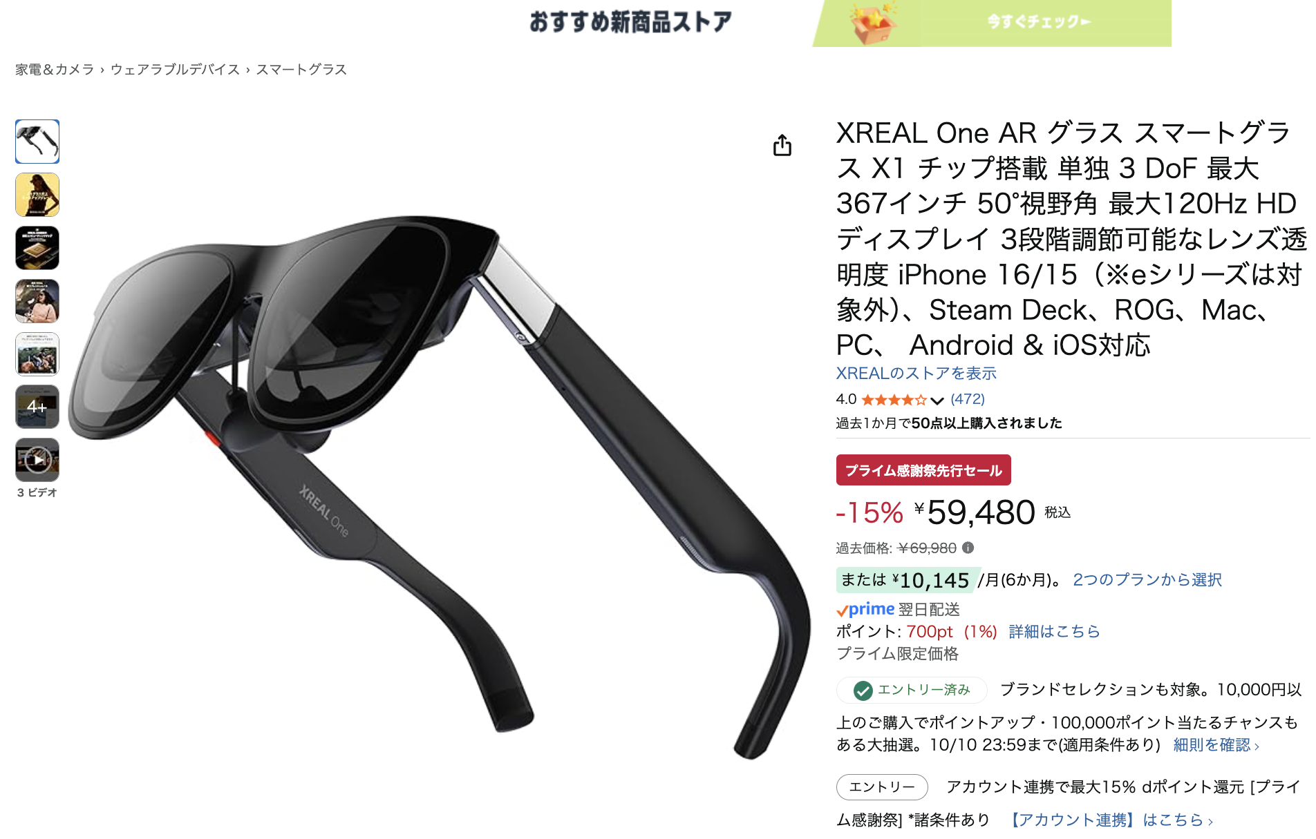 人気ARグラスの「XREAL One」がAmazon感謝祭先行セールで10,000円OFFになっている。
