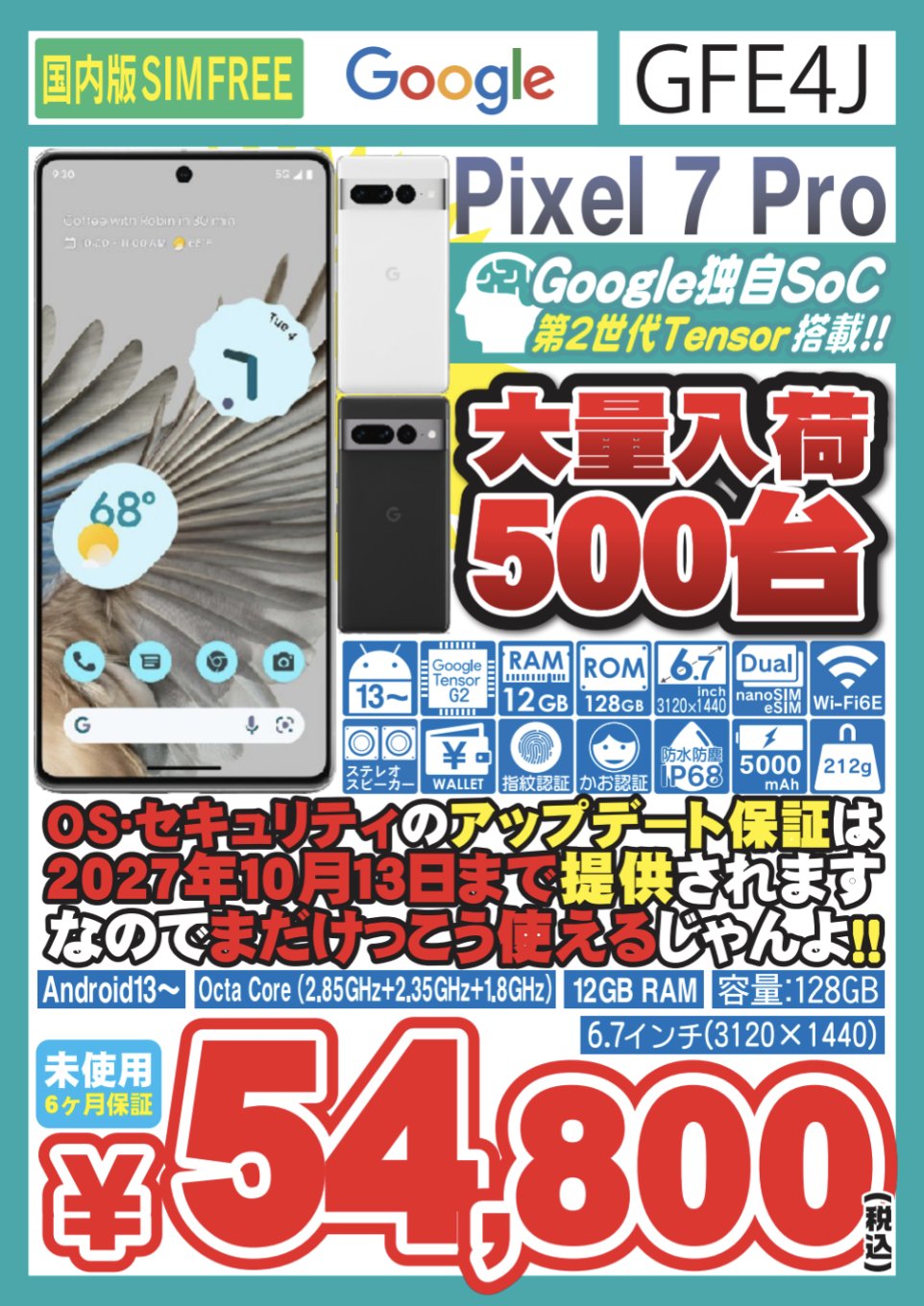 中古PC・スマートフォンを扱うイオシスに「Pixel 7 Pro」が54,800円で大量入荷している。