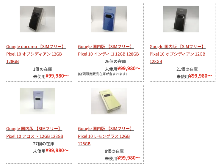 【相場下落】Google Pixel 10 128GB 未使用品が99,980円に【大量入荷】