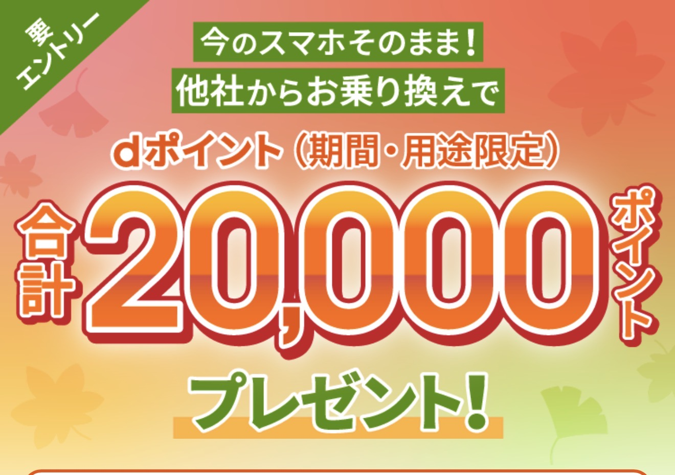 またSIM単体で乗り換えたい方には20,000ポイント獲得キャンペーンが実施中。通信料金6ヶ月分を相殺できるため、減額されないうちに乗り換えたいところ。