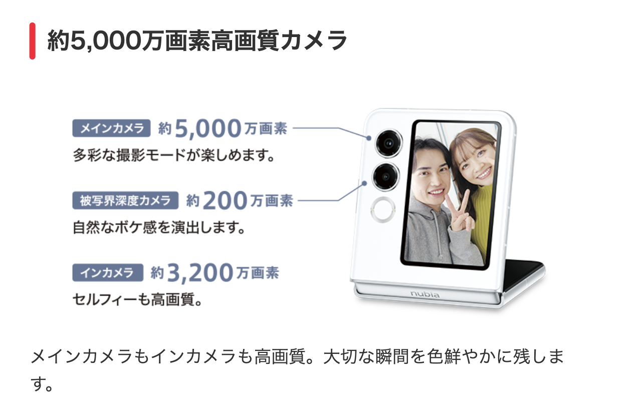 もうひとつは縦型フォルダブルの「nubia Flip 2」である。本体価格は85,680円。これが一括1円になるのはチートと言えるだろう。