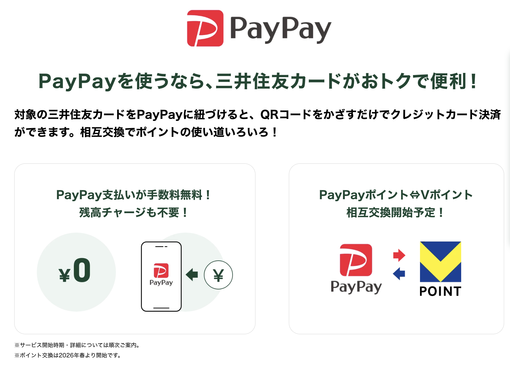 三井住友カードとPayPayは2026年3月24日から開始となる。
