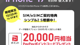 お得情報 ワイモバイル、SIM単体・乗り換え特典を増額。Sプラン申し込みでも20,000P貰える! (本ページはプロモーションを含みます) ワイモバイルはSIM単体乗り換えキャンペーンのポイント付与額を増額した。10月20日までの期間中、小容量「シンプルS」に申し込んでも20,000P戻ってくる。 条件はデータ増量オプションへの加入だけで... 2025.09.19 お得情報ニュース
