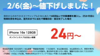 (本ページはプロモーションを含みます) ソフトバンクのサブブランド「ワイモバイル」が2月も多くのキャンペーンや値引きを打ち出している。 直近では「iPhone 16」128GBの返却プログラムをMNP月額810円に値下げ。2年後の返却手数料...