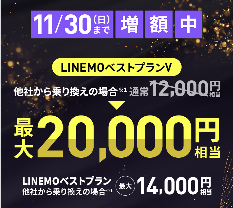 最近ではLINEMOの大型還元も少なくなってきたので、今回の増額キャンペーンを検討してみよう。