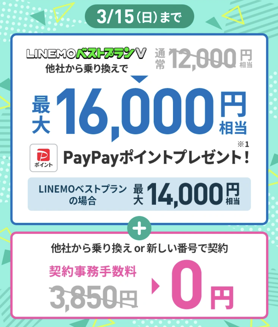 ソフトバンクの格安プラン「LINEMO」が新しいキャンペーンを開始した。3月15日までの期間中、乗り換えで貰えるポイントが4,000円分増額。