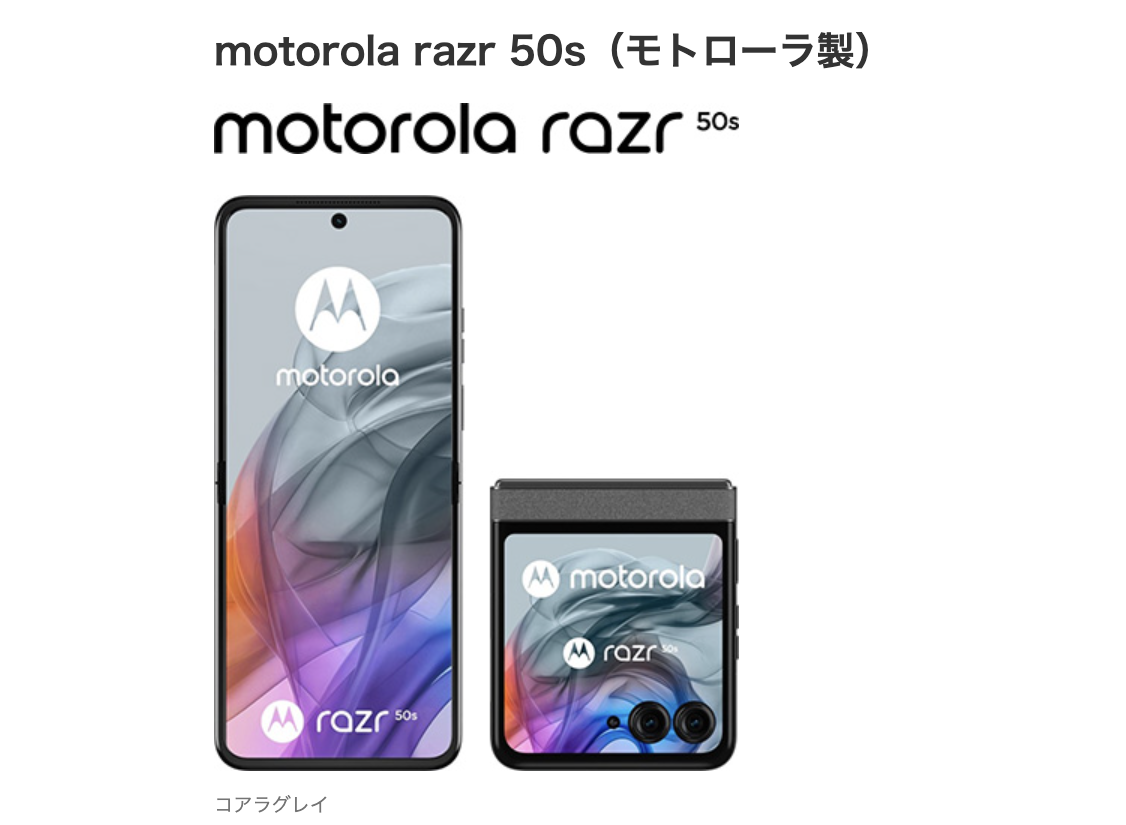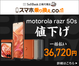 ソフトバンクのオンライン専用代理店【スマホ乗り換え.com】にて「motorola razr 50s」が大特価になっている。