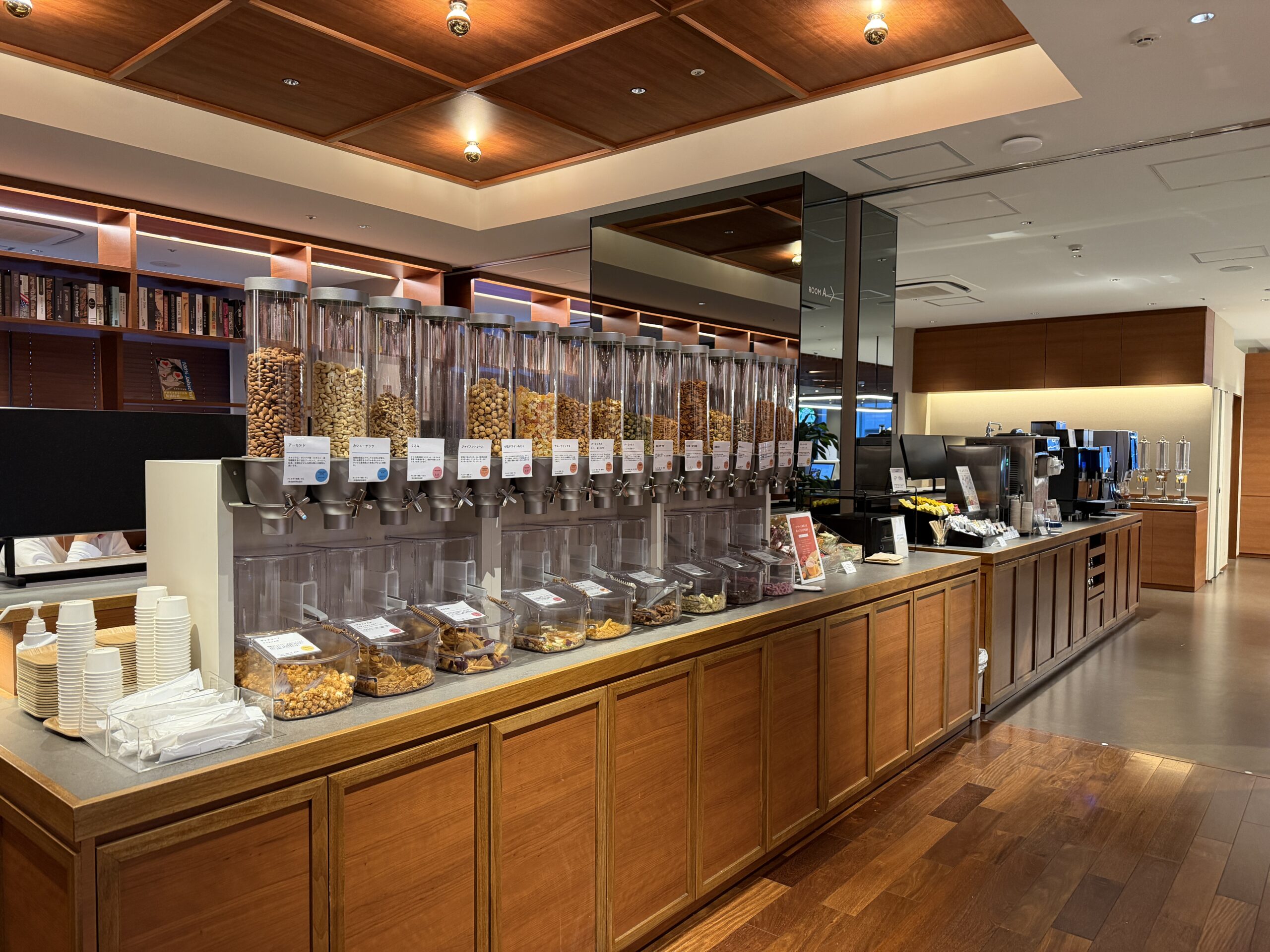 ここは1時間 1,320円の有料ラウンジで、ソフトドリンクのほかにお菓子、パン、スープ、アイスクリームなどの軽食をいただくことができる。
