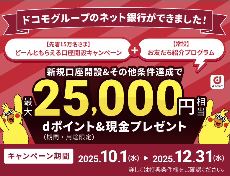 「d NEOBANK」開設+条件達成で最大25,000P獲得