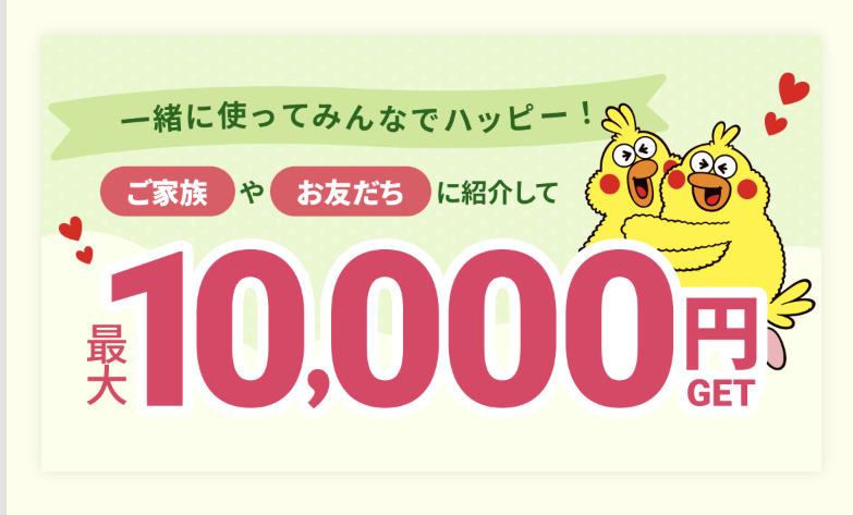 そして3つ目は1人紹介で1,000円分(最大10人・10,000円分)がもらえる特典だ。