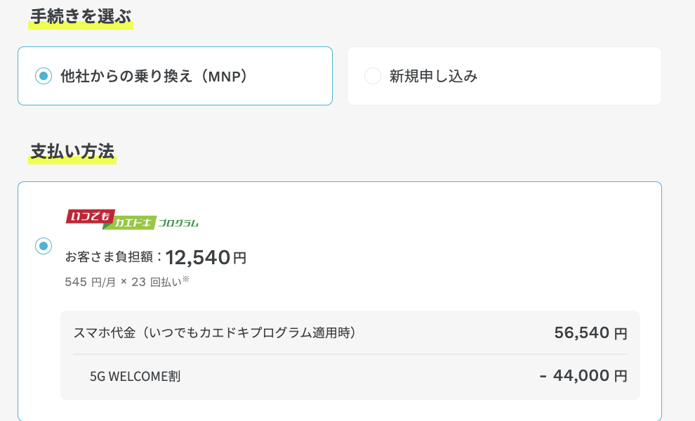 また「在庫なし」となっている「iPhone17」256GBにも注目。他社からの乗り換えと2年後の返却を条件に月額545円(12,540円÷23ヶ月)で4キャリア最安。