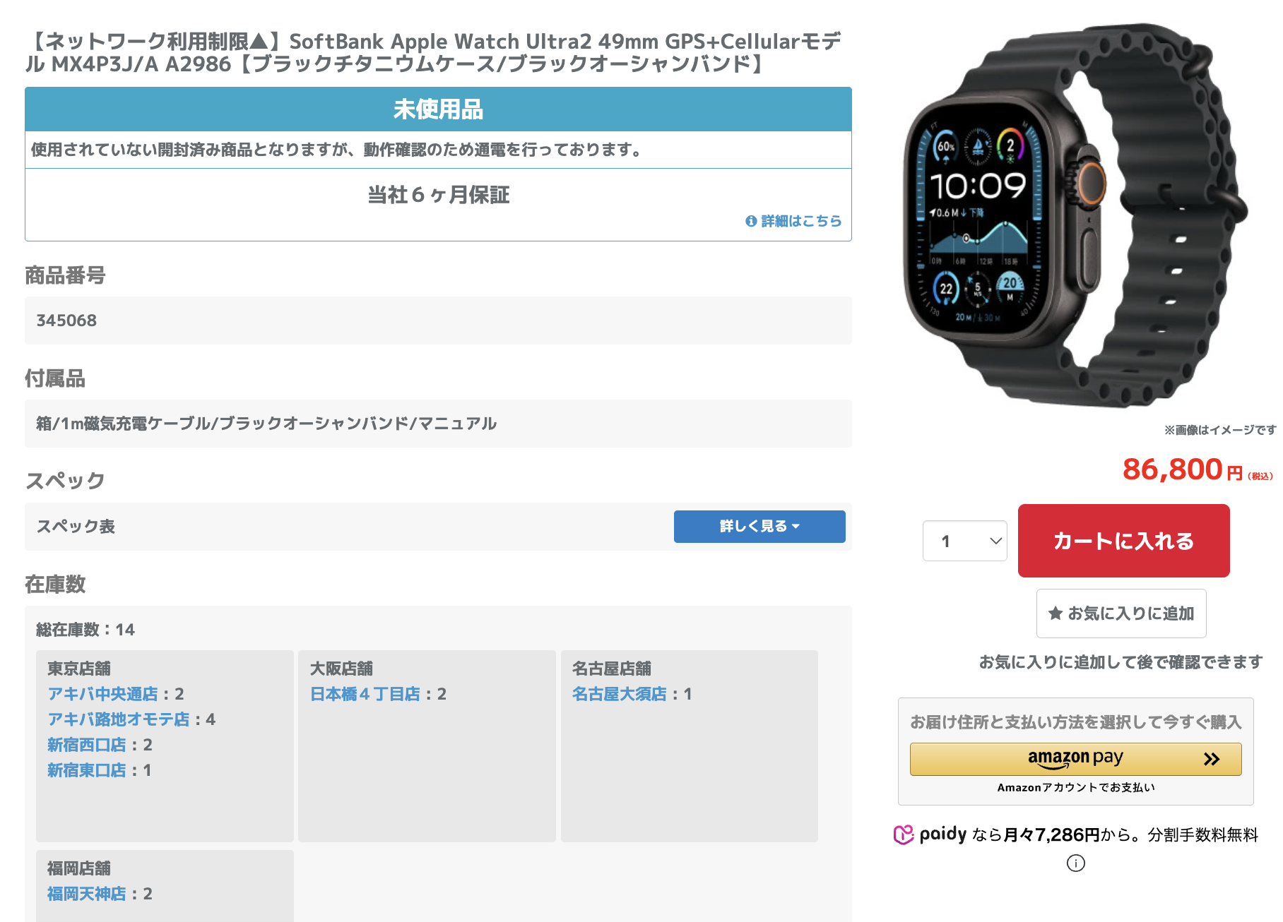 【特価】Apple Watch Ultra 2、未使用品86,800円