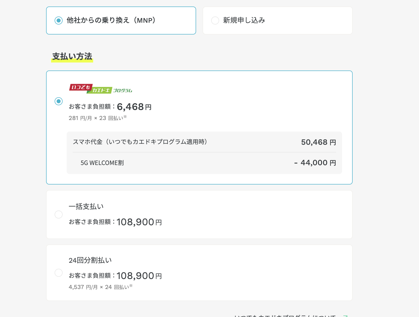 2年間の負担金額は6,468円とほぼ半額に近い水準で、30GB 月額2,970円の「ahamo」プランなら通信費込みで3,251円の破格。
