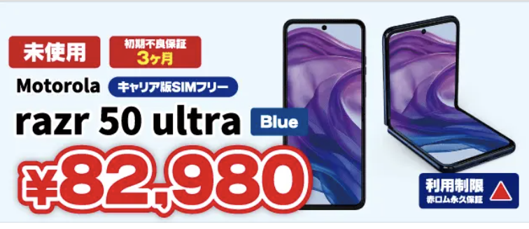 さらに「じゃんぱら」では「motorola razr 50 Ultra」の未使用品も82,980円に値下げされた。