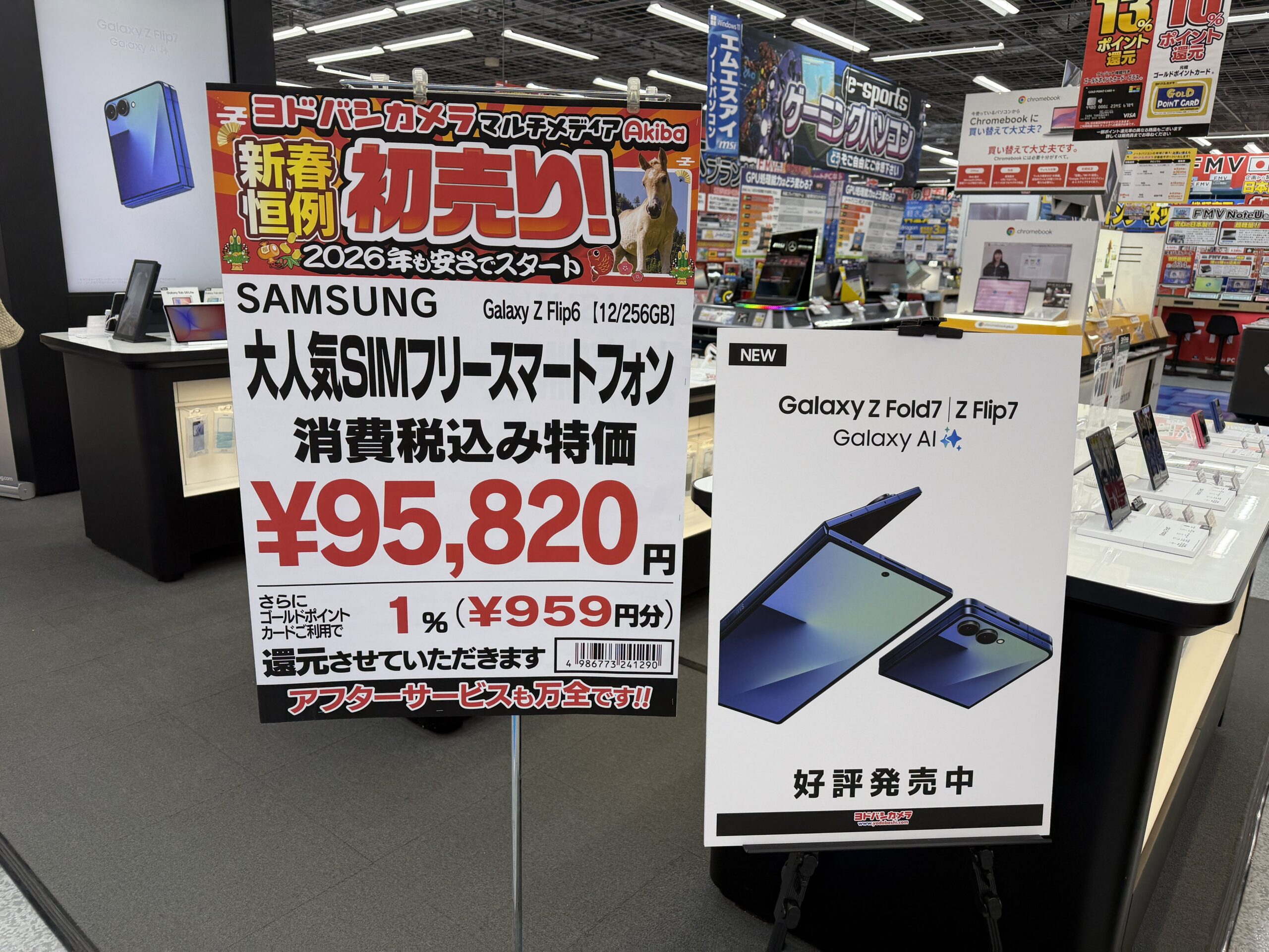 本日の特価品としてはサムスンコーナーの「Galaxy Z Flip6」SIMフリー版95,820円。