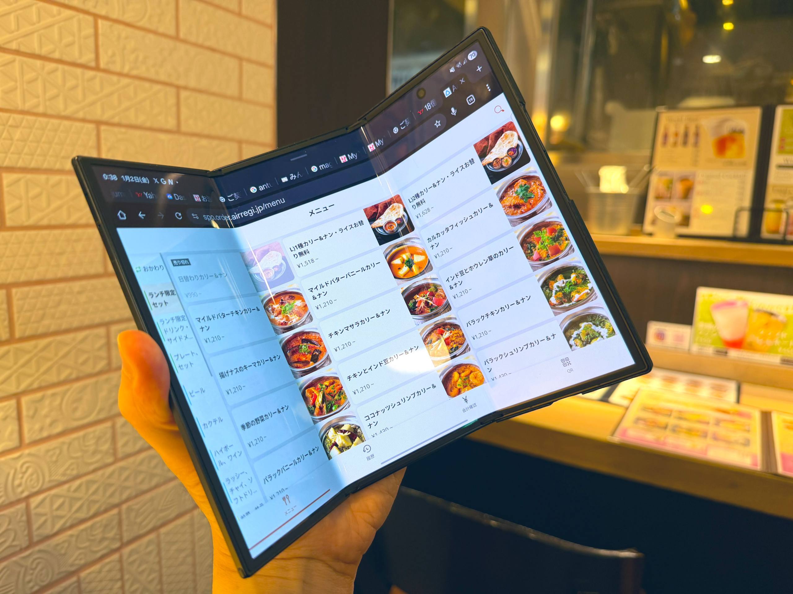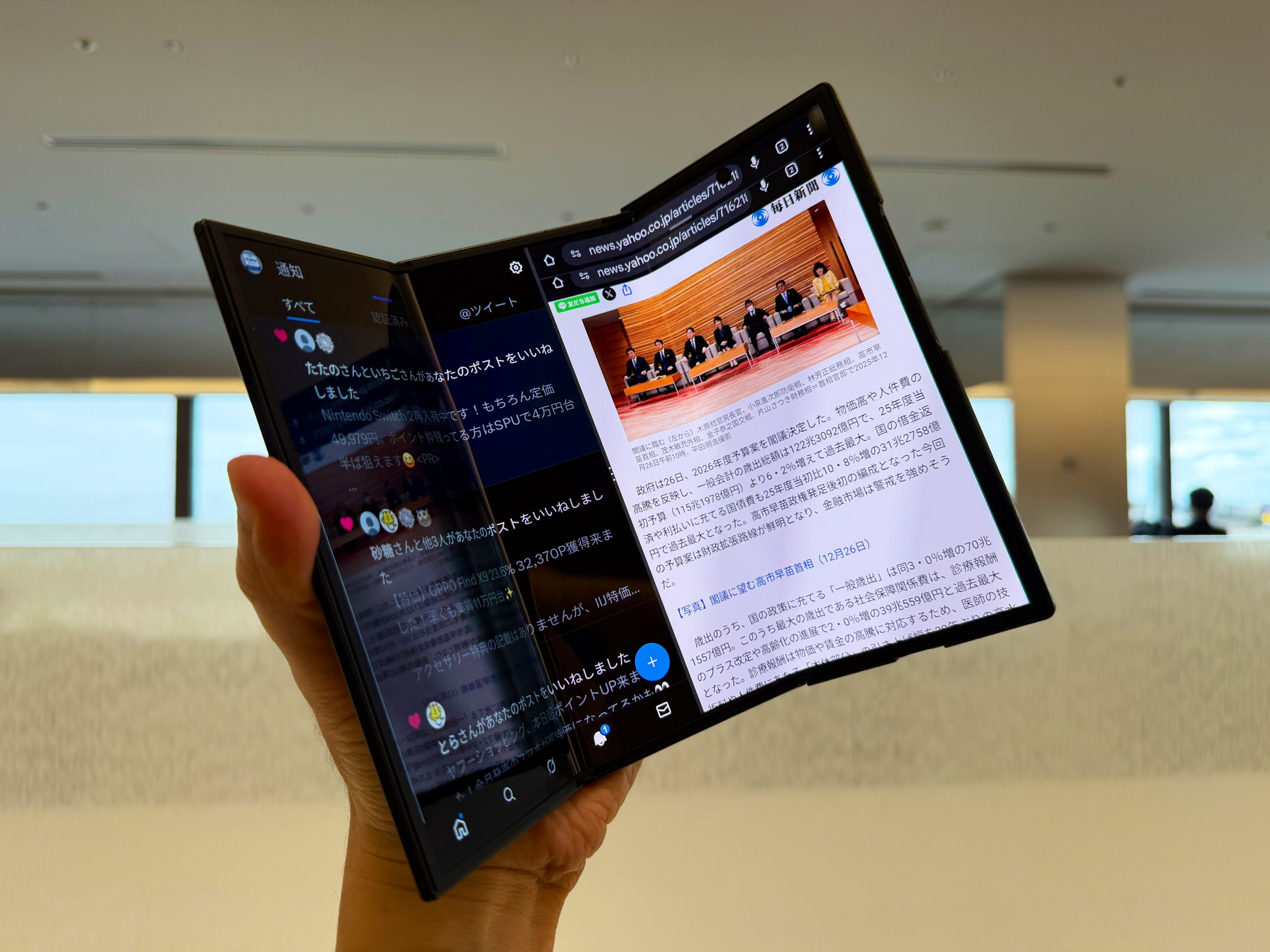 やはり目に入ってくる情報量が「Galaxy Z Fold7」と比べて全然違う。折り目をつけることで新聞や雑誌などのメディアもストレスなく閲覧できる。