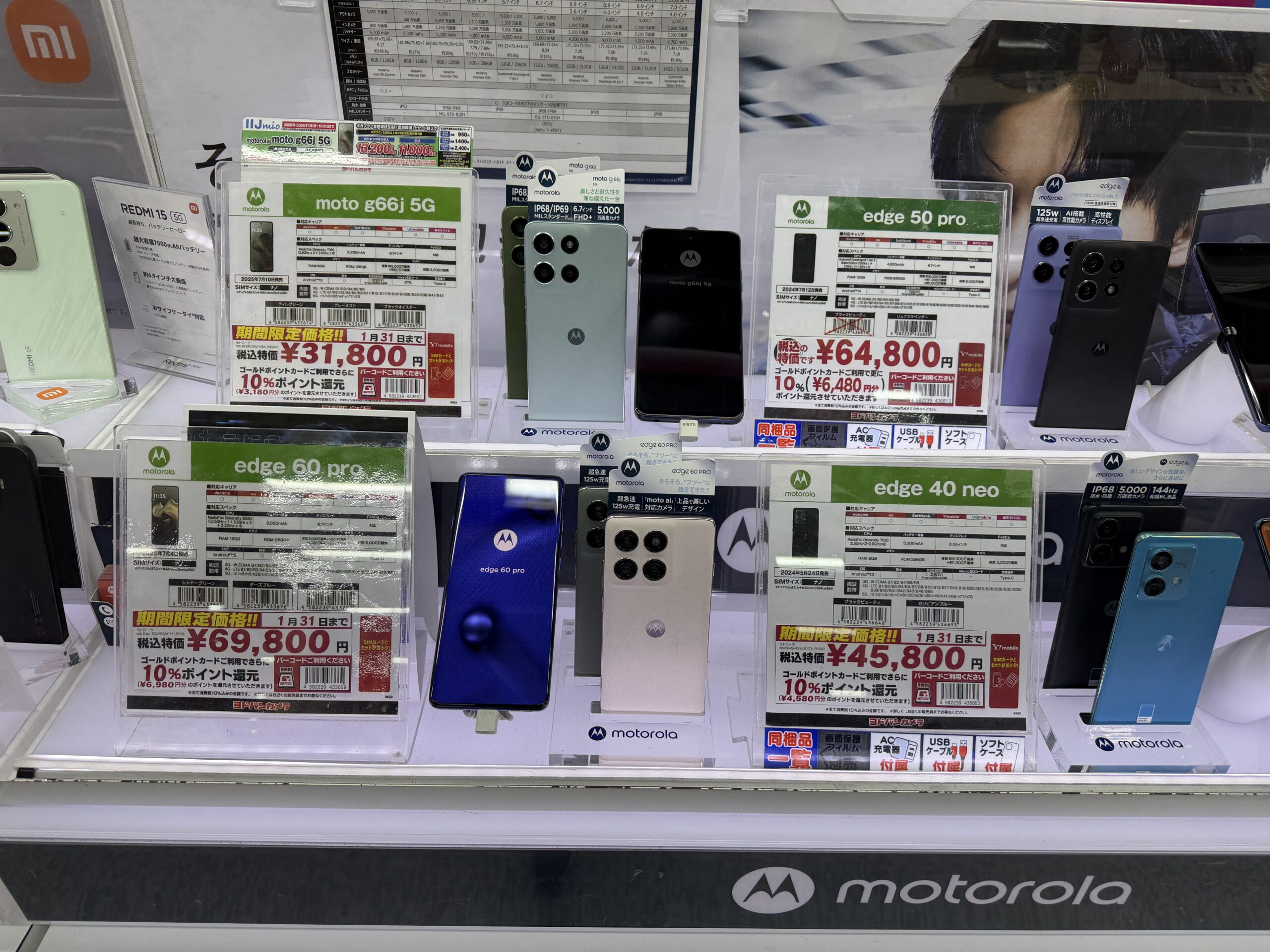 この他「moto g66j 5G」31,800円、「motorola ege 40 neo」45,800円、「motorola edge 50 pro」64,800円、「motorola ege 60 pro」69,800円、「motorola razr 50」99,800円(いずれも10%ポイント)等、モトローラの複数モデルも特価販売中。
