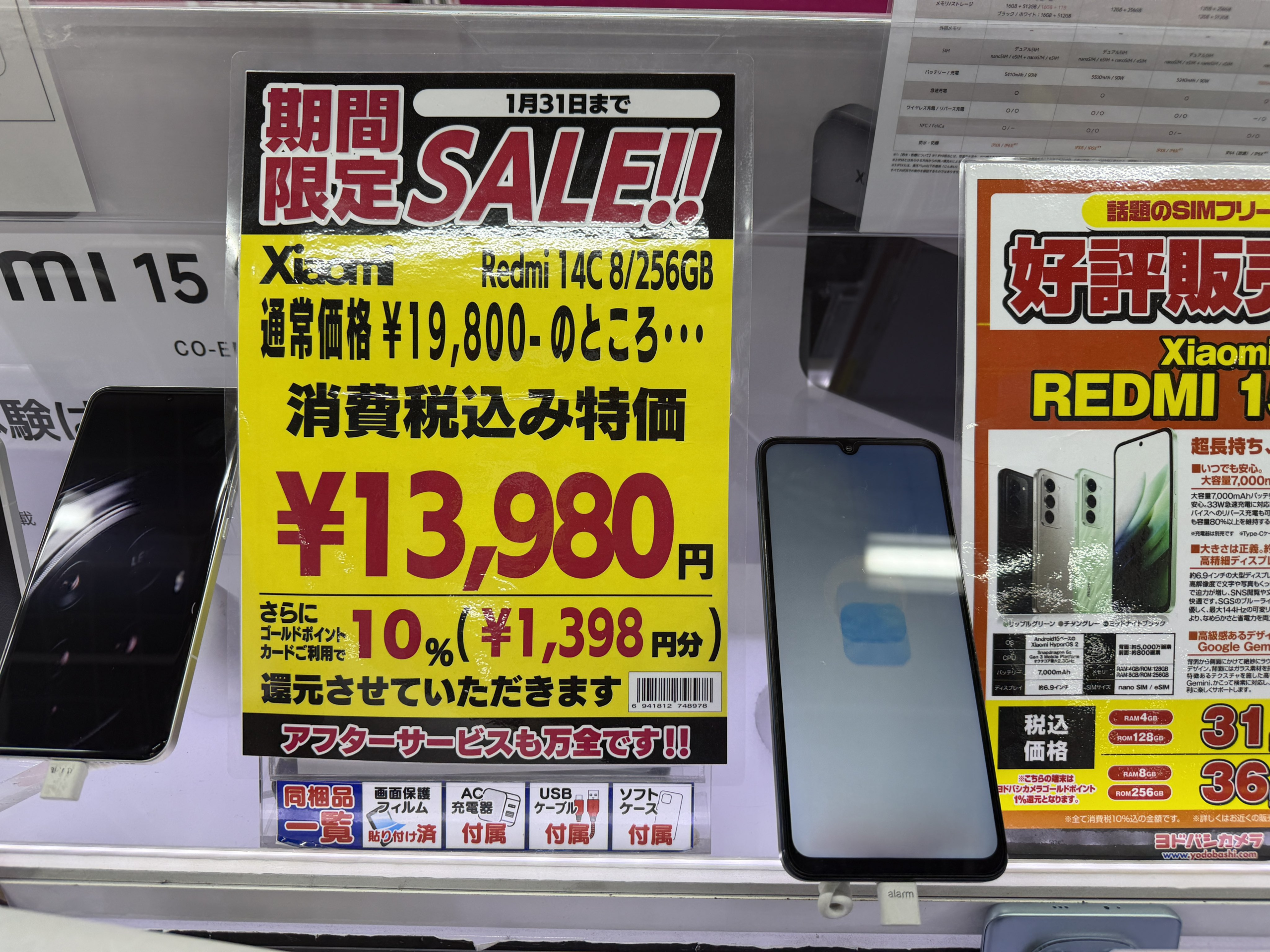 ヨドバシアキバにて、複数のSIMフリースマホが特価になっている。1月31日までの期間中、Xiaomi「Redmi 14C」が13,980円+10%ポイント還元。