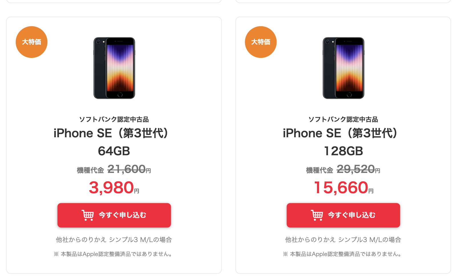 またワイモバイルではMNP一括3,980円〜販売中。ゲオモバイルより多少割高となるが、中古価格としてはこれでも十分に安い。