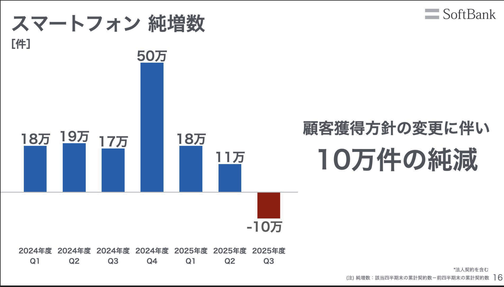 ソフトバンク、モバイル契約数10万件の純減。短期解約が問題視される