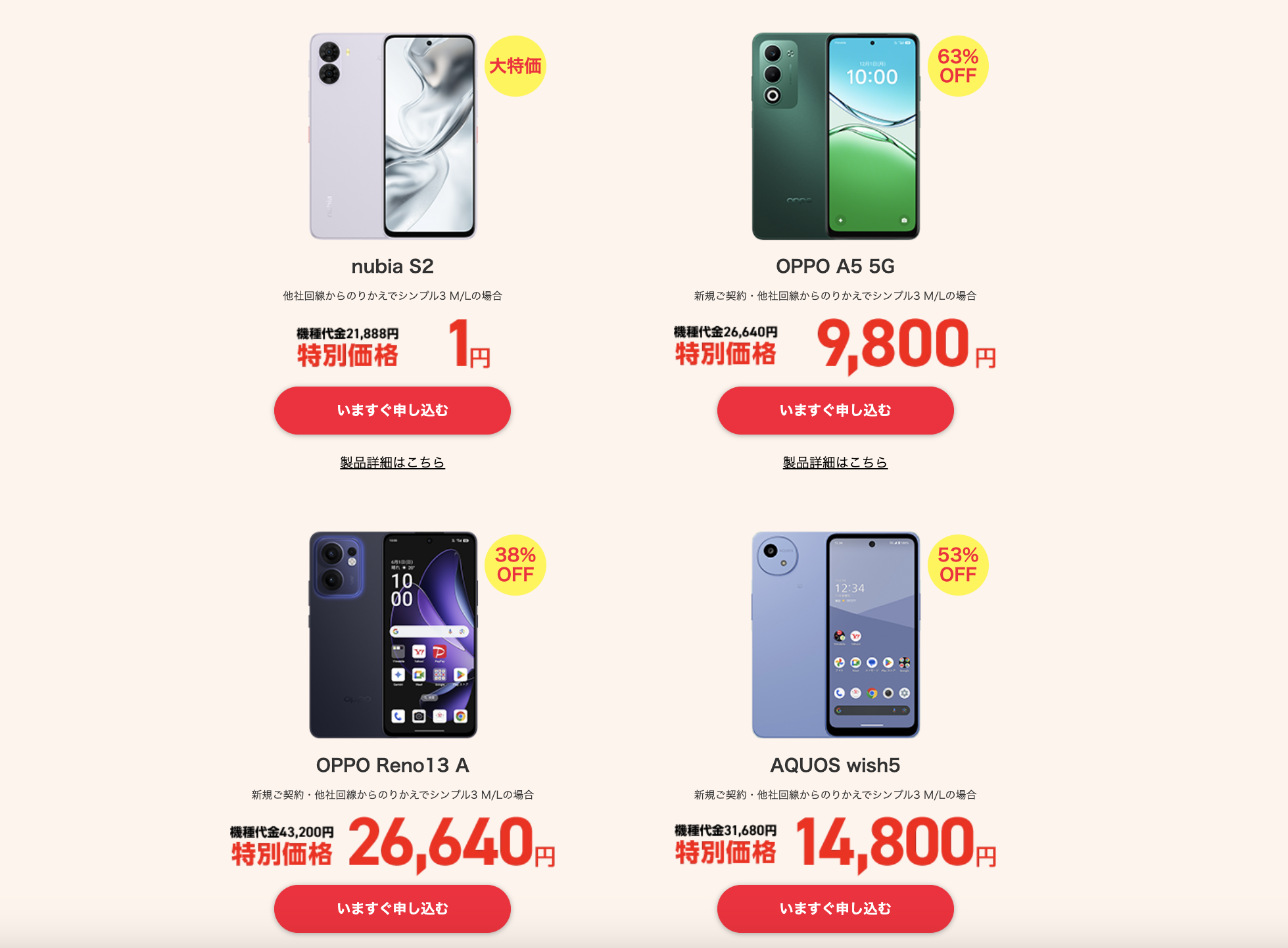 ワイモバイルは春の決算セールを開始した。3月31日までの期間中、「nubia S2」MNP一括1円など特価機種のラインアップを強化。