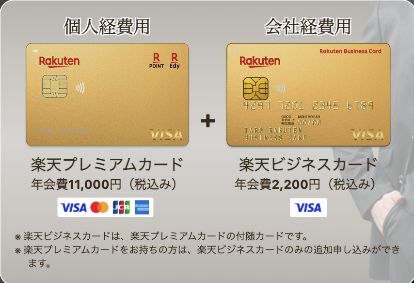 会社経営者・個人事業主向けの楽天ビジネスカードをご存知だろうか。楽天プレミアムカード保有者を対象に年会費2,200円で提供され、個人と経費を分けて管理したい人に便利。
