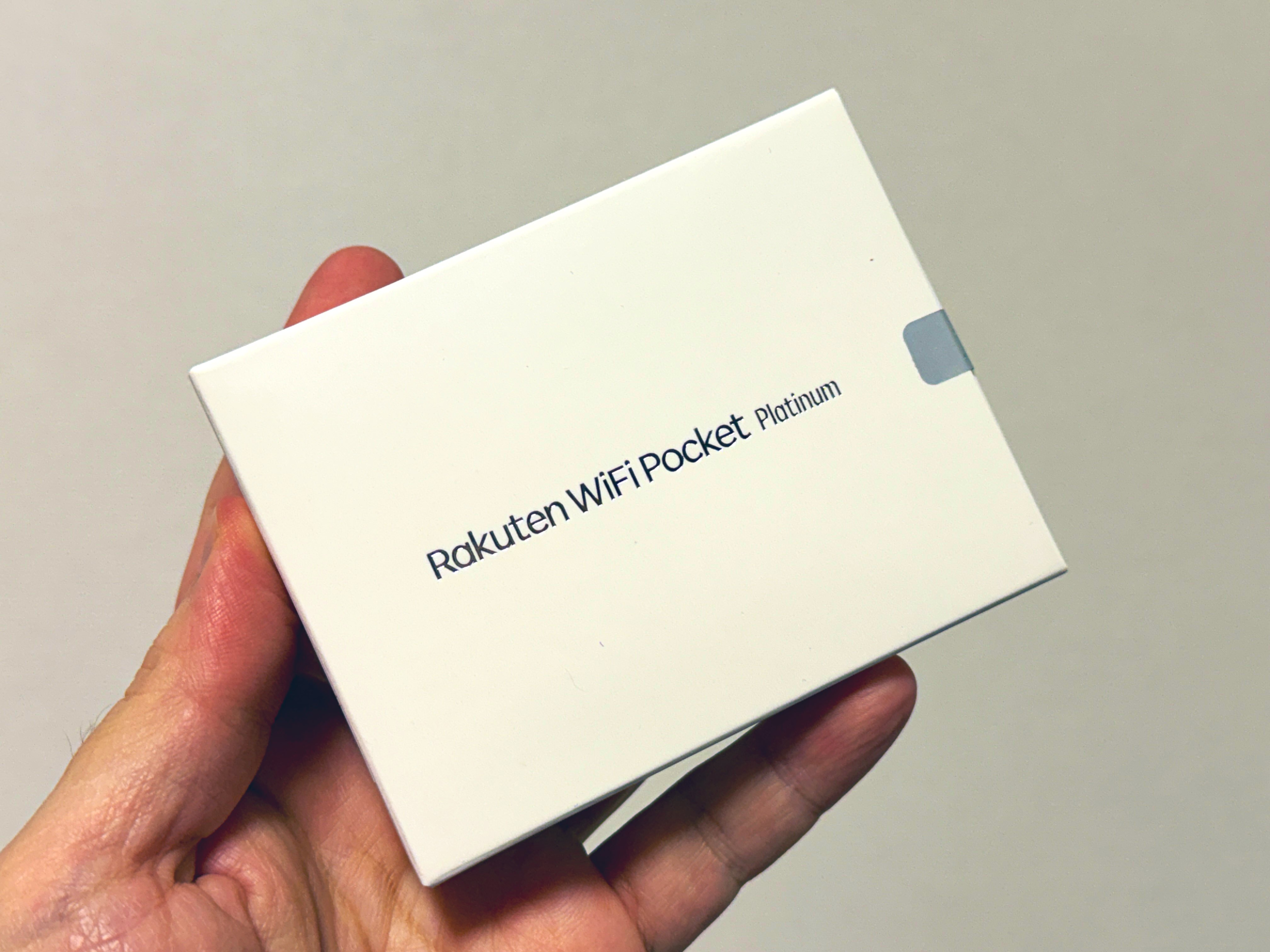 さて、さっそくルーターを使ってみよう。今回届いたのは「Rakuten WiFi Pocket Platinum」と呼ばれる商品で、通常は一括1円で販売されている。