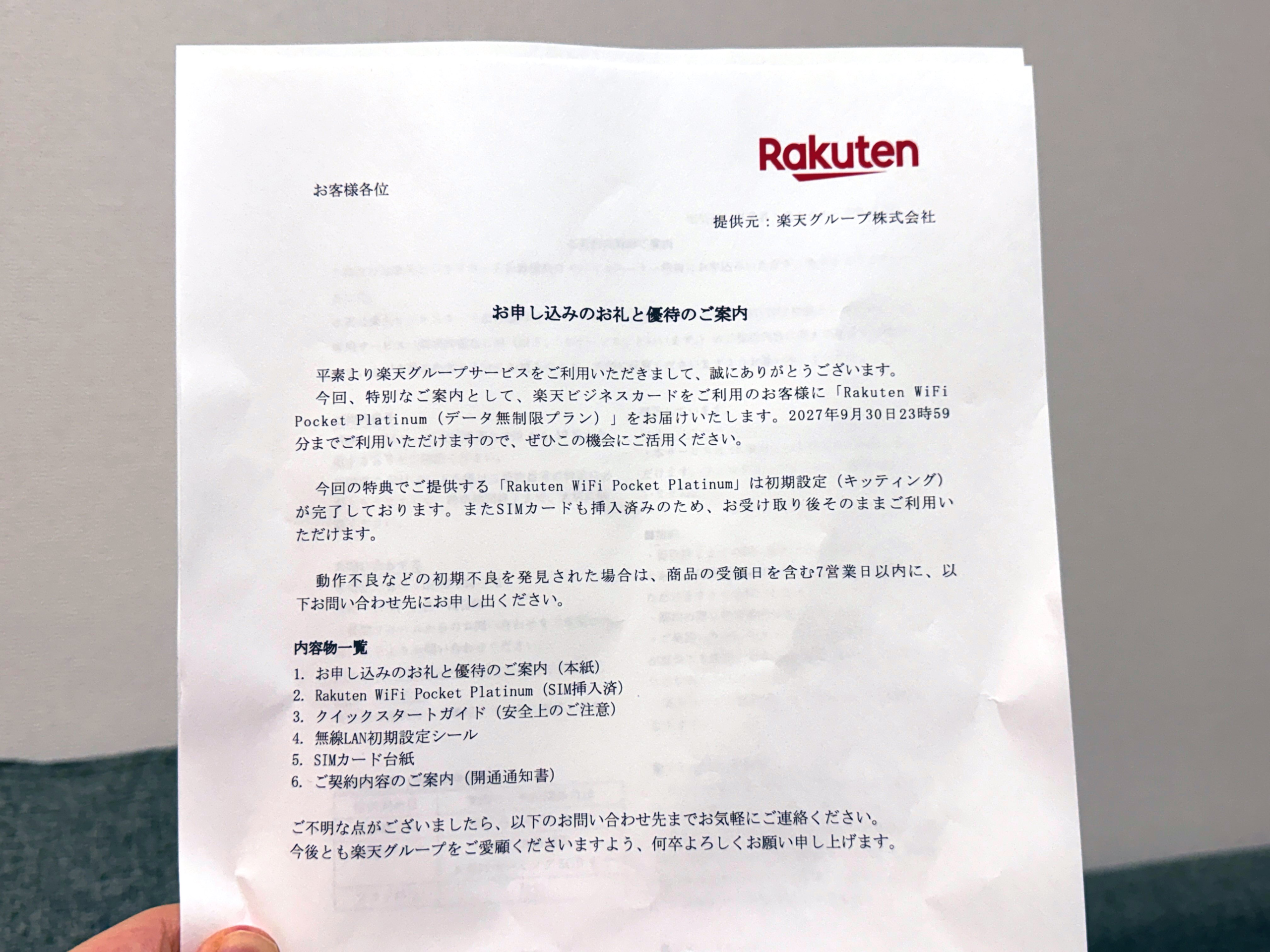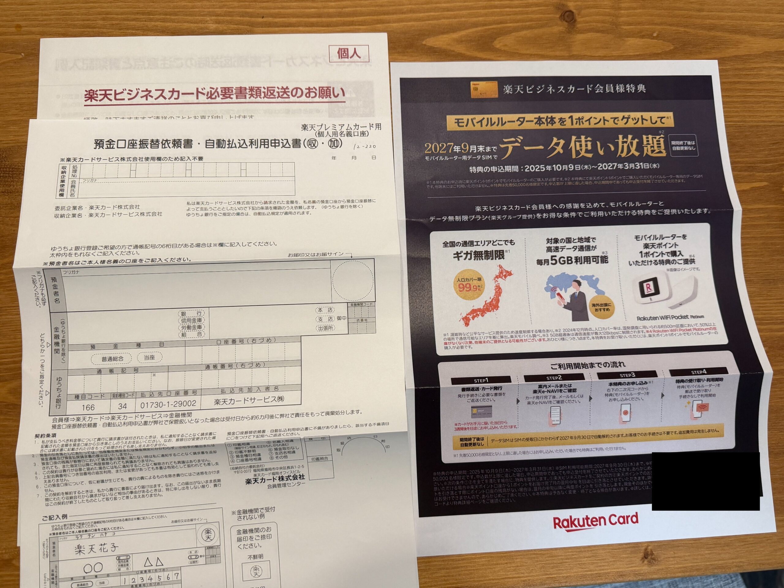 まず感じたこととしては、楽天ビジネスカードの発行と受け取りに凄まじい時間を要したこと。通常カードと異なり、返送書類の送付を待たなければならない。