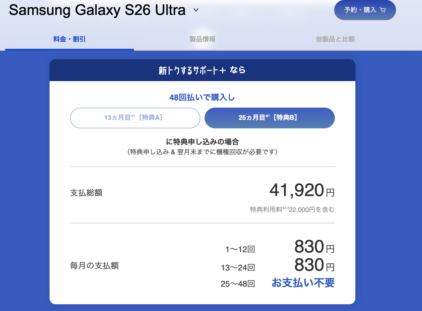 普通に購入して2年後に売却するより圧倒的に手出しを少なくすることができるだろう。さらに上位モデル「Galaxy S26 Ultra」もMNP月額830円で登場。