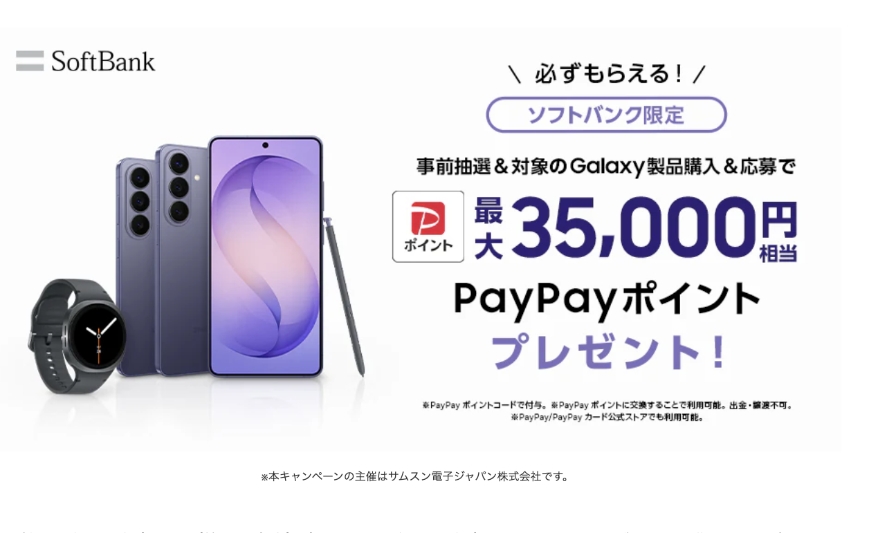 さらに今回、豪華予約キャンペーンが用意されている。2月26日〜3月11日までに「Galaxy S26」を予約し、購入後に「Samsung Wallet」から応募すると漏れなく5,000PayPayポイント付与。