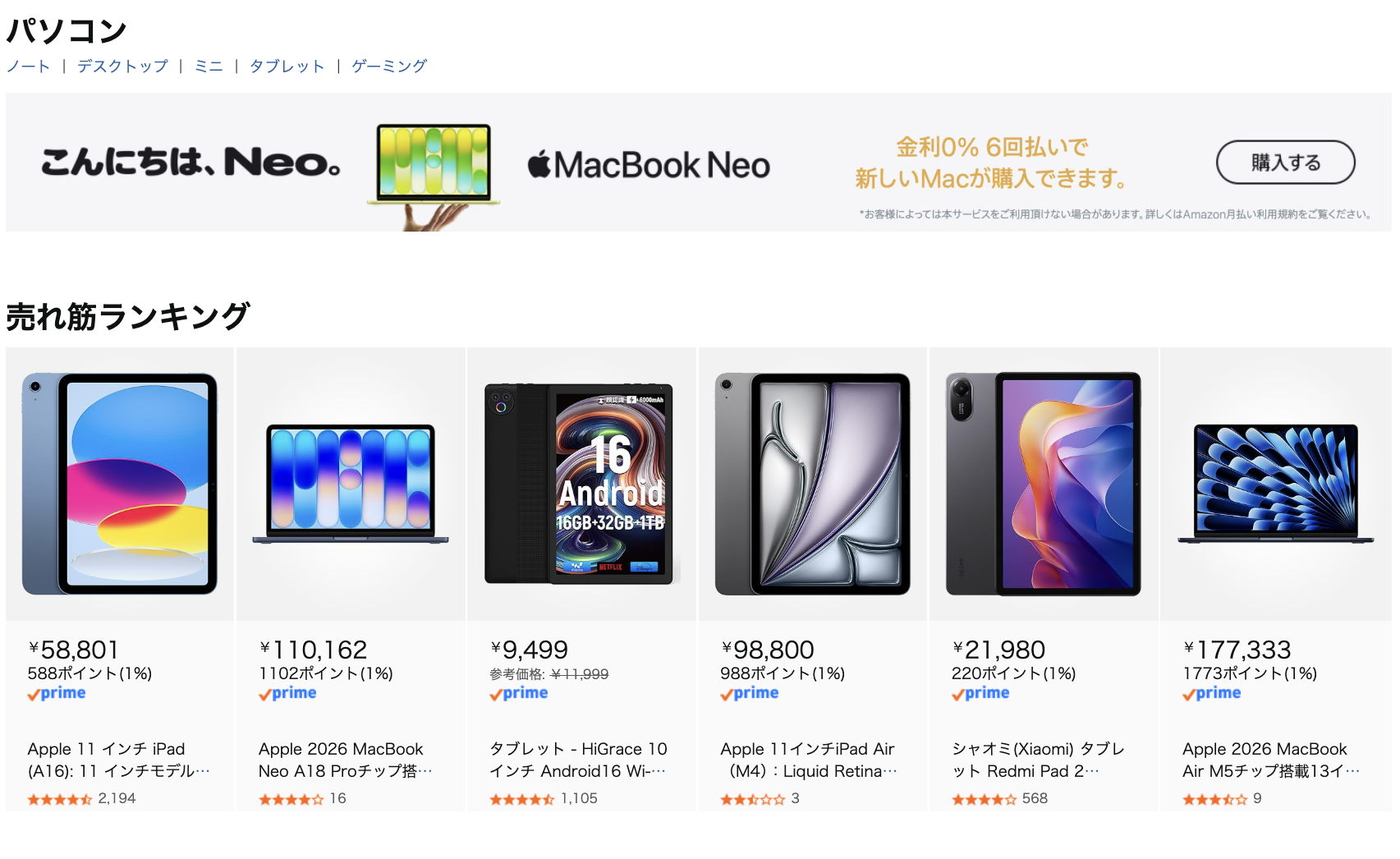 この時、予約開始受付中の「MacBook Neo」「M4 iPad Air」は発売開始前商品のため+5.5%UPの対象外だったのだ。