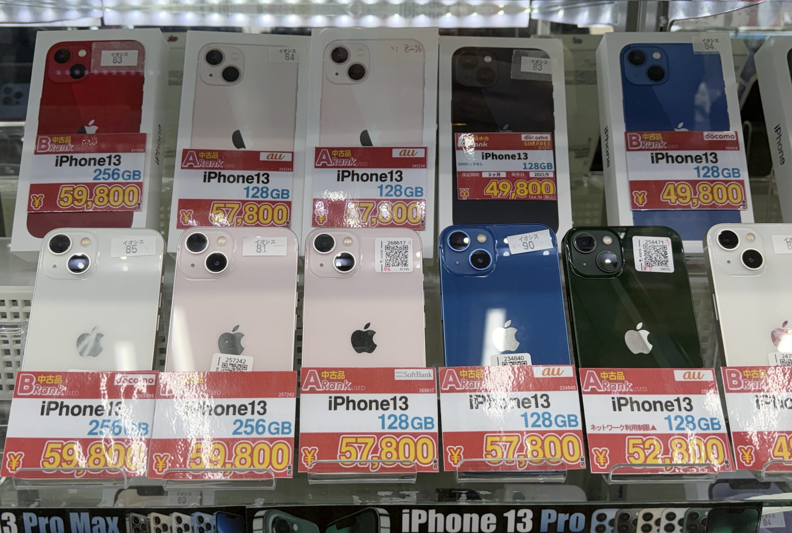 ネット中を探せば4万円台も出てくるものの、ネットワーク利用制限△、状態C〜Dランク、バッテリー80%以下等、何かしらの不安材料が目立つ。もちろん1世代新しくなるにつれて端末価格は高くなり「iPhone 14」は65,800円〜69,980円。