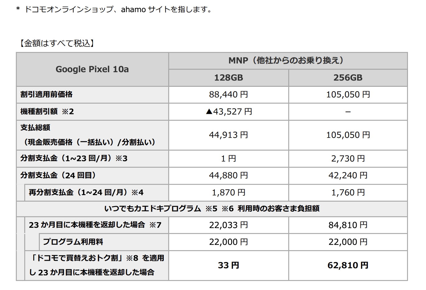 【特価】NTTドコモ「Pixel 10a」MNP一括44,913円