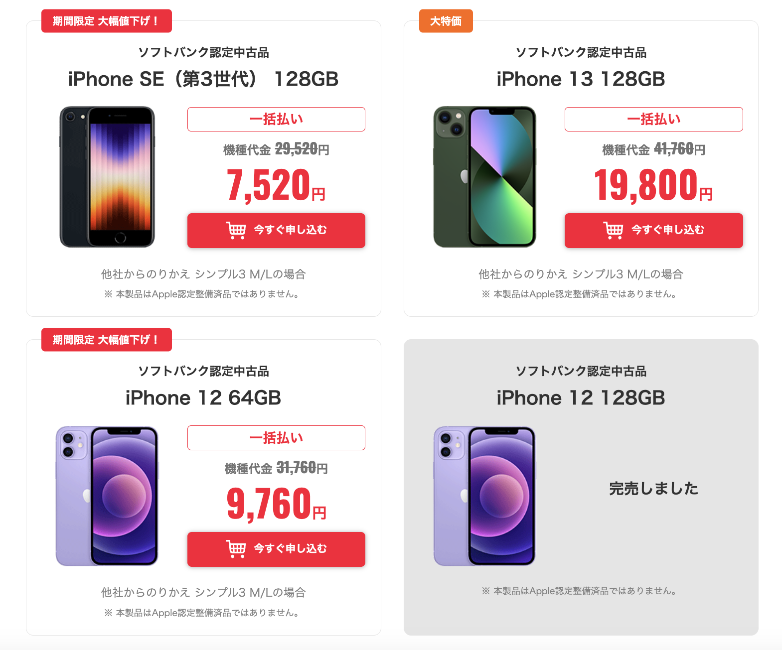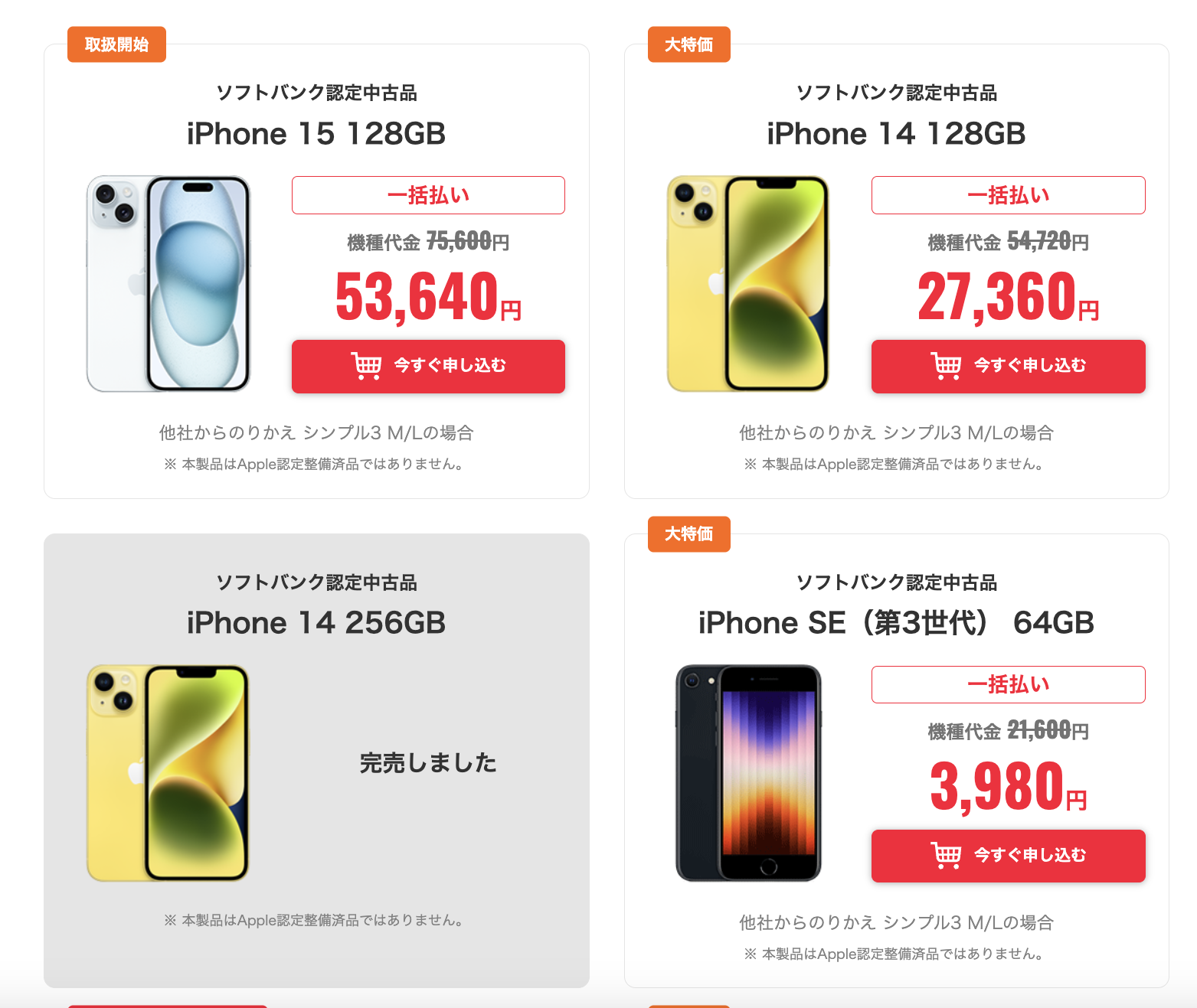 今回ご紹介したモデルのうち「iPhone 13/14/15 SE 64GB」は2月から継続されてきたものの今回でいったん終了、価格改定が入る可能性にも注意したい。