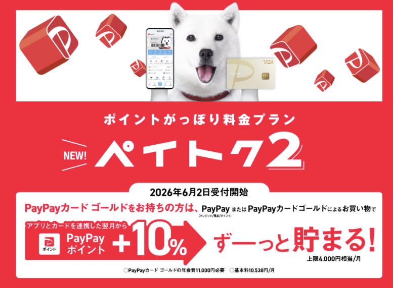 意外にも利用価値が高そうなのが「ペイトク2」だ。現行「ペイトク無制限」より913円高くなっているが、ポイ活条件が大きく緩和。PayPayゴールドカードをうまく活用すれば現行プランより安くなることも考えられる。