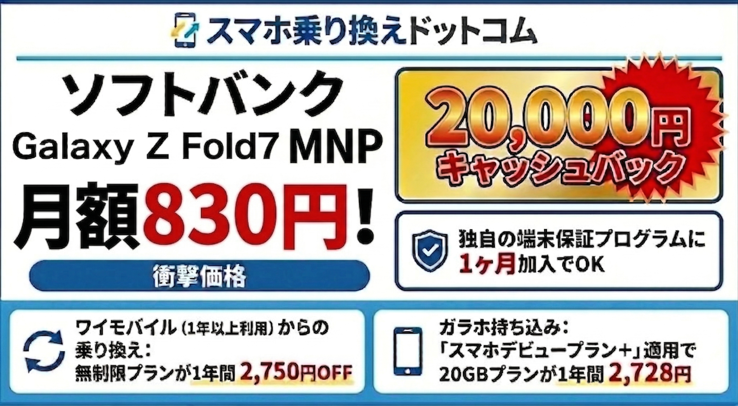 さらにオンライン専用代理店「スマホ乗り換えドットコム」では4月20日まで20,000円のキャッシュバックを実施中。