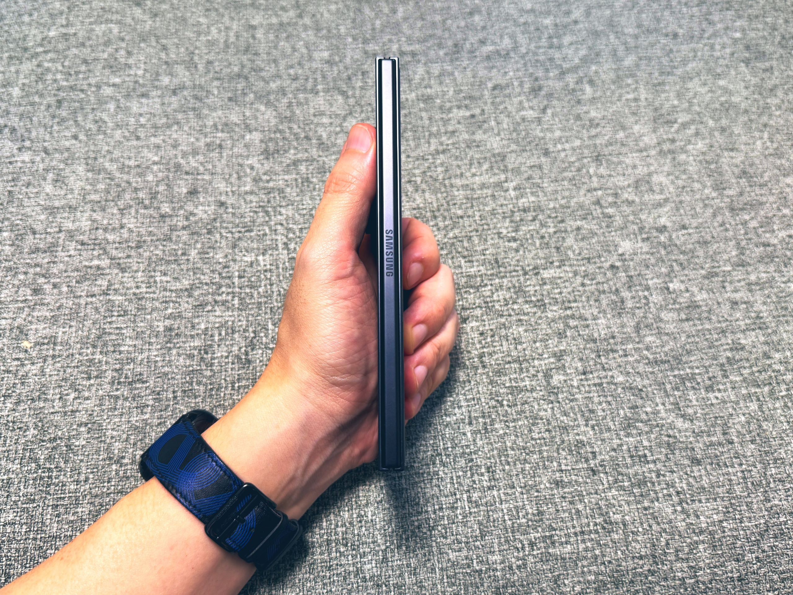 今作ではシリーズ最軽量215gを実現。ヒンジ部分が薄くなったおかげで、閉じた状態では普通のスマートフォン同等の扱いができるようになった。