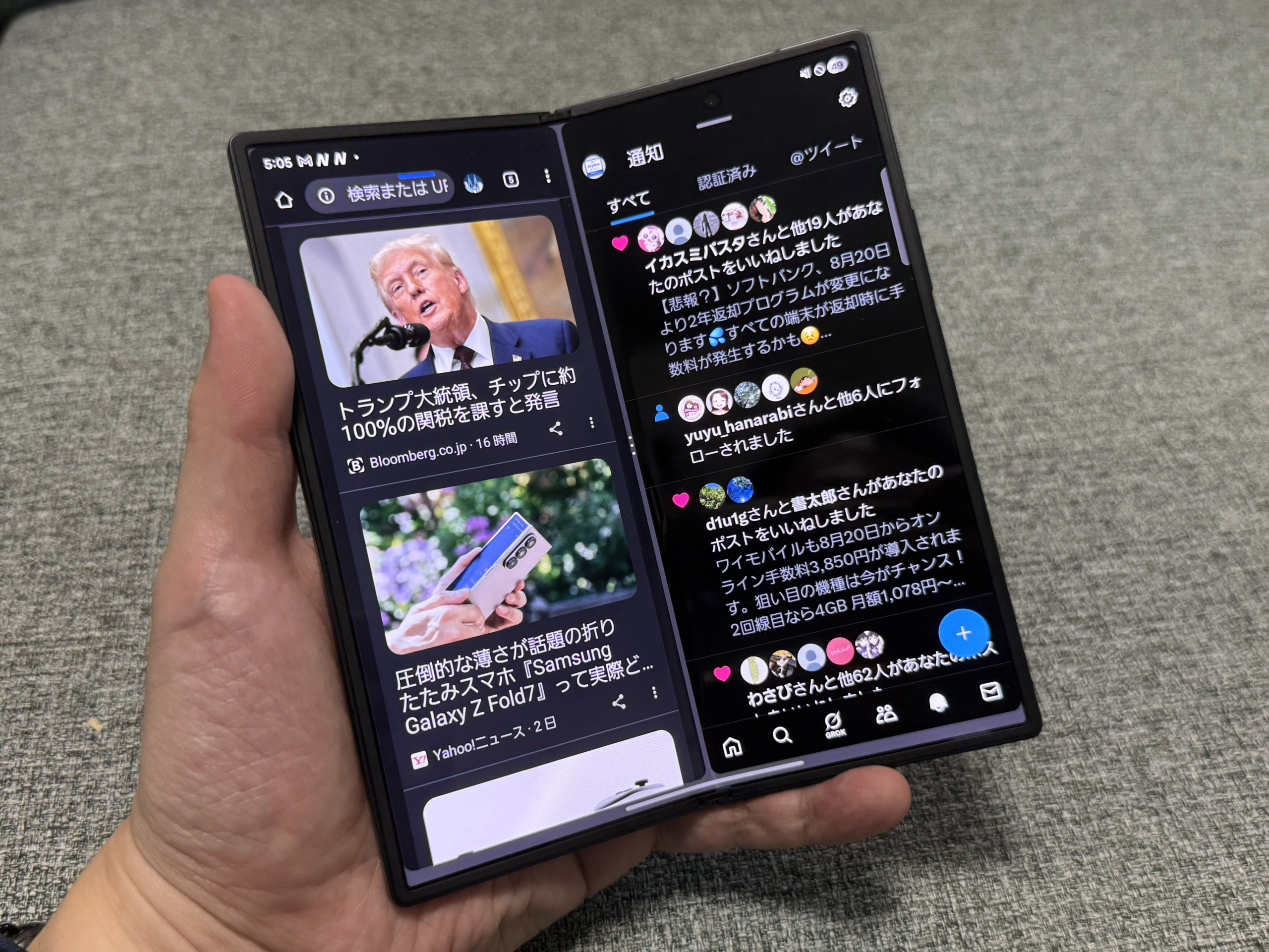 「Galaxy Z Fold7」はSnapdragon 8 Elite for Galaxy、ROM256GB、RAM12GB搭載のハイエンドで、8インチ(サブ6.5インチ)有機ELディスプレイを採用する。