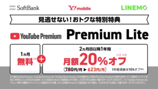 ニュース ソフトバンク、「Youtube Premium Lite」特典が1ヶ月無料 +1年間20%OFF